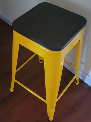 Product Name: Emma and Oliver 24"H Backless Black Metal Counter Height Stool with Wood Seat