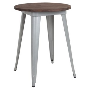 Product Name: Emma and Oliver 24" Round Silver/Wood Metal Indoor Table
