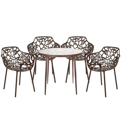 Emma and Oliver 27.5'' Bronze Square Aluminum Indoor-Outdoor Table Set with 2 Bronze Slat Back Chairs
