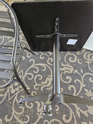 [This review was collected as part of a promotion.] This is such a high-quality table and chairs set. The table is quite sturdy. The waited base helps prevent accidental flipping. The top is simple to clean up after use. It was very easy to assemble. I did it on my own in less than 10 min. The chairs are perfect for the set. All metal construction makes them very sturdy. They are very light and easy to move and stack. They stack easily for storage. This set is stylish enough for an inside set but durable enough for outside.