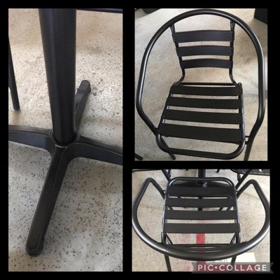 [This review was collected as part of a promotion.] I love the Lila 27.5" square aluminum table set. It's perfect for my family of 4, to sit out back and watch our chickens and goats. My 4yr old daughter loves to sit at the table with me and drink lemonade while we watch birds and butterflies 💜