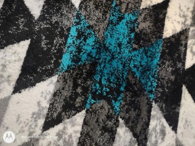 [This review was collected as part of a promotion.] I needed to brighten up my living room and chose this beautiful 8’ x 10’ South Western Turquoise/Black/Grey/White olefin with Jute backing area rug. What a difference it has made to my living area, totally brightened up the space.