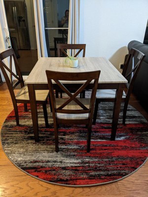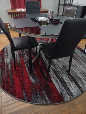 [This review was collected as part of a promotion.] This is a beautiful rug. The size is perfect and fits really well under a round dining table. It looks amazing with my glass table and the rest of my dining room decor which is all black, gray and red, so it matches perfectly. It is thick and feels very cushy under your feet. It vacuums really well and even spills are easy to clean up. I am very pleased with this rug.