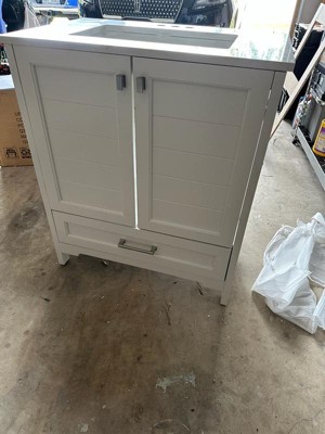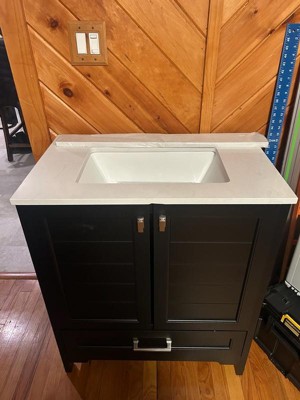 [This review was collected as part of a promotion.] I have had this vanity installed for a little while now and it's been a wonderful upgrade from a sink that was broken after the ceiling vent fell and broke the previous sink. If I had known a little more I would have possibly chosen a different faucet, because the short depth of the sink can sometimes lead to a lot of splashing with the faucet at full power. At first glance, this vanity looks great, but when you look closer, it’s a little cheap. The wood is easily scratched and the thin veneer can be scraped by accident with a fingernail. I wouldn’t expect it to hold up for years if you’ve got kids or a high-traffic bathroom. That said, it's perfect for a rental unit, a budget-friendly bathroom upgrade, or as a DIY project. I will likely need to repaint it in a couple of years based on how much has already come off. Assembly is about as intimidating as building a bookshelf. If you’ve done that before, you’ll have no problem here. It’s more open in the back, which can be convenient for plumbing but feels a bit unfinished. The proportions are slightly off with the sink top higher quality than the cabinet itself, which makes the cabinet’s super-thin veneer stand out more. The drawer is usable but flimsy, and the guides could definitely be smoother. It's basically a bookshelf with a marble sink top and for the look it's nice. An affordable way to upgrade without having to take out a loan just for a nice looking sink.