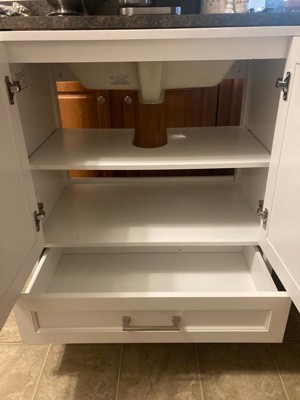 [This review was collected as part of a promotion.] The assembly could’ve been better. There were some holes on the door that my husband had to add. The sink itself is great quality, but the type of material that they use for the cabinet is not going to hold up with a bathroom that has a shower and lots of moisture. This would be great in a bathroom that is only a half bathroom. The design of it and the cabinet doors is beautiful. I honestly wish this was better quality because we would have had it in our bathroom in a heartbeat. The bottom drawer is great for extra storage as you don’t always see that. I received this in exchange from my honest review.