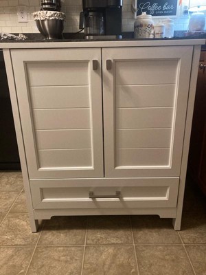 [This review was collected as part of a promotion.] This haven bathroom, vanity sink storage cabinet with soft clothes doors and bottom drawer was a great change for my bathroom. The assembly was not that great, but it was not terribly hard. The instructions were minimal but clear and me and my husband took the time to lay everything out before starting, so we did not have a hard time putting this together. As far as durability, I am not for sure…it seems sturdy enough, but the wood seems on the cheaper end of the spectrum. The design is great. It has a bottom drawer for easy access to certain things and the functionality of the cabinet doors is OK. The packaging was good. Everything was in order and nothing was damaged when delivered to my home. All in all I do like this cabinet and it will stay in my bathroom for the time being.