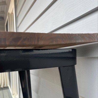 [This review was collected as part of a promotion.] The 31.5" Square Black Metal Indoor Bar Height Table with Walnut Rustic Wood Top looks fantastic in our basement bar area. We were looking for a bar height table and this is perfect. It looks great and was super easy to assemble. There was a small chip on the table top but it's not very noticeable. We have received lots of compliments and I think this table will serve our family well!