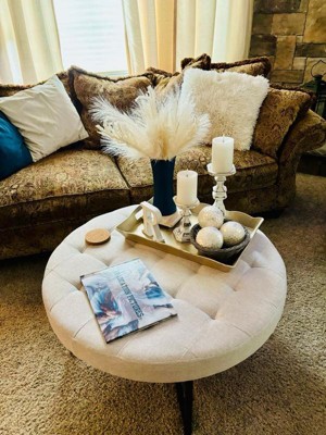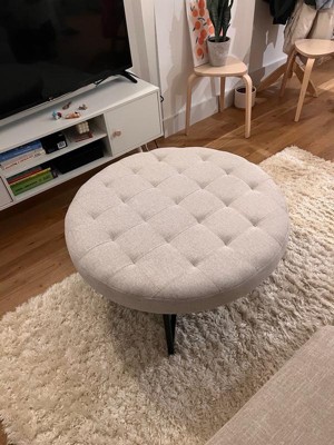 [This review was collected as part of a promotion.] Simple and stylish is this round,linen,tufted ottoman. This ottoman has a classic look and is the ideal choice for your living room or gathering area. It features quality linen upholstery for comfort and softness. The tufting on the ottoman makes this a classy addition to your space that will look great with the rest of your decor. In addition to being a perfect way to put your feet up while sitting in your favorite chair, this ottoman can serve as an extra seat or a coffee table if you place a tray or coasters on it. It will definitely add versatility to your space. Adjustable floor glides make moving easy. A sturdy iron frame delivers durability, as the ottoman can hold up to 250 lbs. Assembly is quick and easy, it took about 20 minutes to assemble. Cleanup can be done with a quick vacuuming or light brushing.