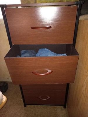 [This review was collected as part of a promotion.] I was nervous when I read the sides of the cabinets were fabric. I assumed it wouldn’t be as sturdy as it is! Each drawer is spacious! It’s exactly what I needed to fill up some wall space.
