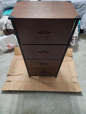 Emma and Oliver 4 Drawer Storage Dresser with Black Cast Iron Frame, Brown Wood Top and Brown Easy Pull Engineered Wood Drawers with Wooden Handles
