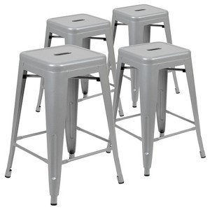 Product Name: Emma and Oliver 4 Pack 24" High Metal Indoor Counter Bar Stool - Stackable Stool, Silver
