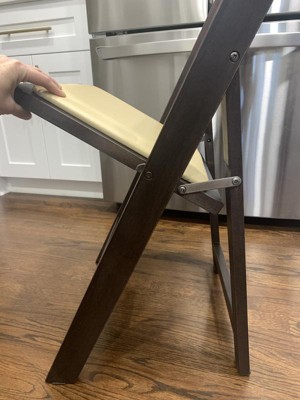 [This review was collected as part of a promotion.] The HERCULES Series Chocolate Wood Folding Chair with Vinyl Padded Seat is such a beautiful chair. It not only is great quality and very sturdy but it has a comfortable padded seat and held my 200+ husband. I would definitely recommend this chair!