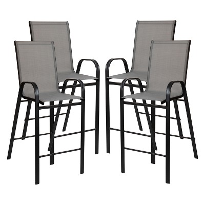 Emma and Oliver 4 Pack Gray Outdoor Barstools with Flex Comfort Material-Patio Stool
