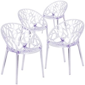 Product Name: Emma and Oliver 4 Pack Transparent Oval Shaped Stacking Side Chair with Artistic Pattern Design