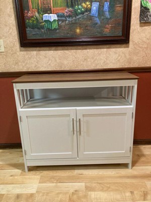 [This review was collected as part of a promotion.] I’ve been looking for a piece of furniture to use as a coffee station and this one fits the bill. Be sure to set your expectations realistically since this isn’t solid wood - it’s particle board or compressed shavings. Meaning it’s pretty fragile and not completely waterproof. Putting it together took about 2 1/2 hours with 2 people going at it. The instructions were a tad confusing and in the end one of the doors doesn’t exactly line up with the strike plate. I think the screws weren’t lined up exactly right. However, it’s functional and that’s really all I needed. Plenty of storage space, cute build and a great size. It does exactly what I need it to - and therefore I am happy.