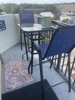 This is a nice set but it is taller than my other bar height set. Would not purchase for a balcony for safety reasons but otherwise a nice set and a great price.