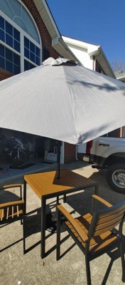 [This review was collected as part of a promotion.] Got this for my parents as it is just them two at the house and they needed something for their deck that would provide some shade but not take up too much space. This was the perfect size! The umbrella is great and easy to adjust up and the weights stand keeps it firmly in place. I highly recommend for anyone with a smaller patio!