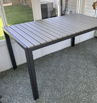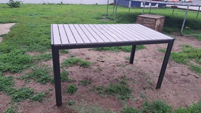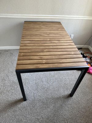 [This review was collected as part of a promotion.] Absolutely love this outdoor dining table! The faux teak poly slats look incredibly realistic, and the metal frame feels sturdy and durable. It’s the perfect size for our patio and fits 4 people comfortably. Highly recommend!The table is easy to clean, and the faux teak finish doesn’t fade in the sun. The metal frame is solid, and the table feels well-made. A solid addition to our outdoor space.The faux teak slats give it an elegant touch, and the metal frame is sturdy and well-built. It’s the perfect addition to our backyard!