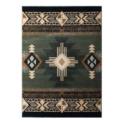 If you're a fan of Western aesthetics, this is the rug of your dreams. Featuring a vibrant Southwestern geometric pattern against a rich sage background, this rug will tie all of your favorite design elements together and complete your Western themed room. The olefin facing is moisture and water soluble stain resistant for your peace of mind. Olefin is also non-shedding and colorfast to last for years to come. The high density fibers give the rug an ultra soft feel underfoot and protect from the chill of cold flooring surfaces such as hardwood and tile. To care for this rug, simply vacuum regularly without a brush roller or spot clean with a diluted solution of clear, mild detergent and water and a dry cloth. Spills should be blotted with a dry cloth. In case of heavy soiling, the rug can be steam cleaned, but shouldn't be exposed to excessive moisture.