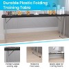 Ensure you have enough seating for holiday gatherings, family game nights, or catering events with this foldable plastic table. 3 adults fit comfortably at this folding table that's ideally sized for either temporary or permanent use. Spills clean up quickly on the durable, waterproof 1.75" thick top while the powder coated legs resist nicks and scratches to maintain its appearance. Storage and transport are made easy as the legs lock underneath the top. Folding tables can be your go-to table for unexpected company or any occasion where extra space is needed.