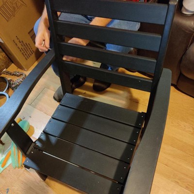 [This review was collected as part of a promotion.] This chair came in this morning for me. And I went straight to work putting it together. It was pretty simple. I was actually surprised how heavy it was and how much weight it can hold. I actually thought it was wood. Also, I was worried this would be a flimsy chair. But I’m so glad to see that I was wrong! It’s very sturdy! And it’s actually comfortable! I’m not sure how it will do in weather, as my apartment has a covered porch. But I can very easily see this chair as one I would love to sit in the sun with by the pool! Or around a fire pit with the family roasting s’mores!