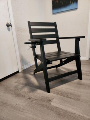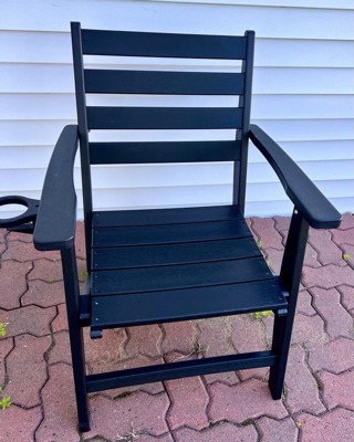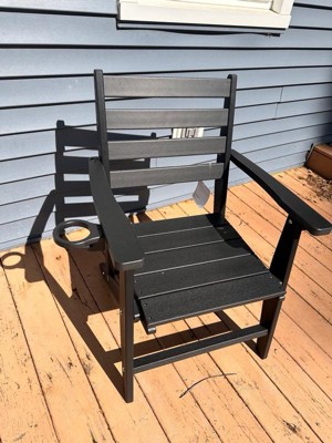 Emma and Oliver Adirondack Dining Chair with Fold Out Cup Holder, Weather Resistant Recycled HDPE Adirondack Chair in Black