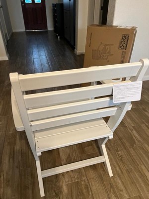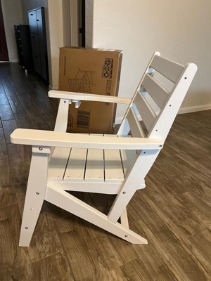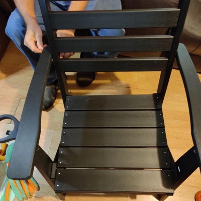 [This review was collected as part of a promotion.] This chair came in this morning for me. And I went straight to work putting it together. It was pretty simple. I was actually surprised how heavy it was and how much weight it can hold. I actually thought it was wood. Also, I was worried this would be a flimsy chair. But I’m so glad to see that I was wrong! It’s very sturdy! And it’s actually comfortable! I’m not sure how it will do in weather, as my apartment has a covered porch. But I can very easily see this chair as one I would love to sit in the sun with by the pool! Or around a fire pit with the family roasting s’mores!