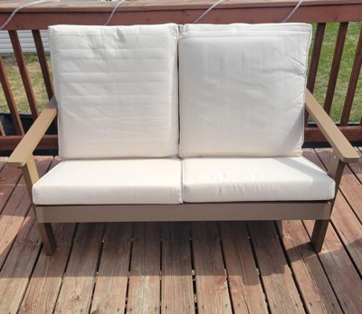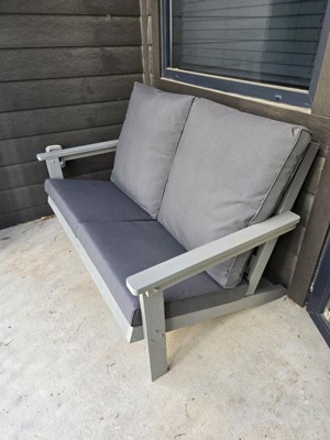 [This review was collected as part of a promotion.] I love this patio loveseat. It is sooo comfortable and easy to assemble. I was able to wipe it down with water, and it was easy to remove some dust. I am so excited to use this product year round. I like the color and how you can remove the cushion sleeves easily to wash. It is also really sturdy and durable. This is an amazing product that I highly recommend. Thank you so much Influenster!!!