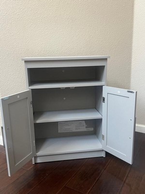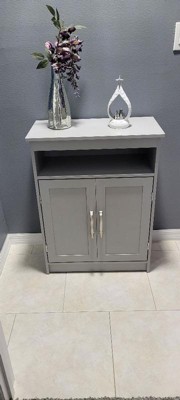 Product Name: Emma and Oliver Bathroom Storage Cabinet Organizer with Adjustable In-Cabinet Shelf, Two Magnetic Closure Doors, and Upper Open Shelf in Gray