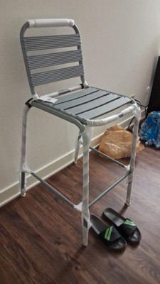 [This review was collected as part of a promotion.] This bar stool has exceeded my expectations. It’s very sturdy and holds up to 350 lbs. static weight. The aluminum slatted back provides excellent support and comfort for my back, allowing me to sit for extended periods without any discomfort. The silver metal finish gives it a sleek and modern look, making it easy to clean and maintain. It’s a great addition to my patio and I highly recommend this to anyone who is looking for reliable and stylish bar stools.