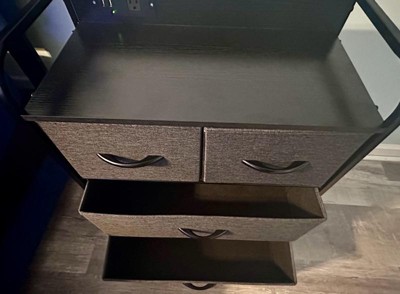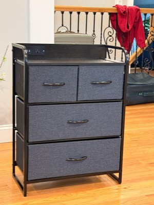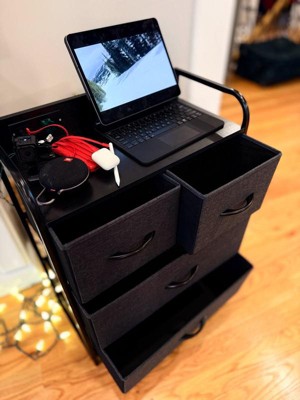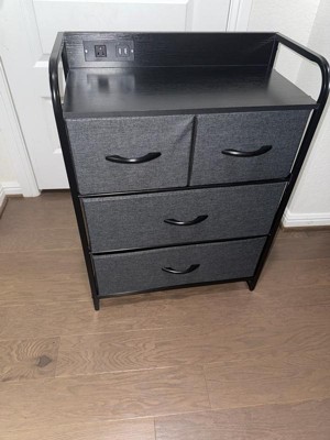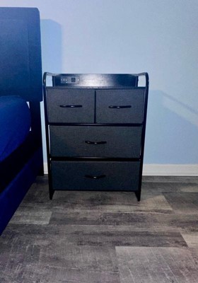 Emma and Oliver Charging Nightstand with 4 Fabric Drawers, 2 USB Ports, 1 Outlet in Charcoal/Blk