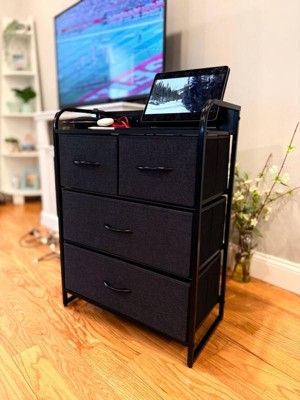 [This review was collected as part of a promotion.] The dresser was relatively easy to assemble, and once assembled, it was sturdy and well-balanced. My fabric drawers are surprisingly spacious. I use them to store baby socks and other baby items, and they hold a lot more than I expected. I like the fact that it's small and cute for your bedroom, and that it doesn't take up a lot of space. It also has two USB ports, and its frame is made of metal, so it doesn't break easily.