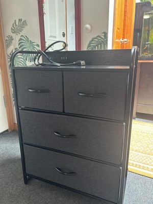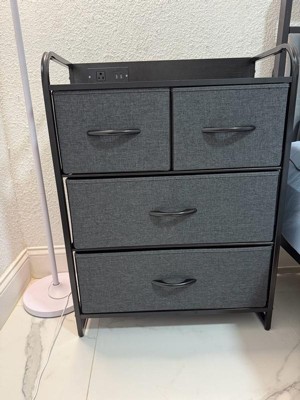 [This review was collected as part of a promotion.] The dresser was relatively easy to assemble, and once assembled, it was sturdy and well-balanced. My fabric drawers are surprisingly spacious. I use them to store baby socks and other baby items, and they hold a lot more than I expected. I like the fact that it's small and cute for your bedroom, and that it doesn't take up a lot of space. It also has two USB ports, and its frame is made of metal, so it doesn't break easily.