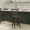 Add traditional style to any home or business with this wooden counter height swivel stool. The classic ladderback design has old school charm with a fresh outlook. The integrated footrest provides pressure relief for your legs and the sturdy, solid wood frame holds up to 300 lbs. static weight. The 360° swivel seat makes for easy conversation and movement while the fixed floor glides prevent damage to hard flooring surfaces. Cleanup is easily achieved with a dry cloth and assembly is a breeze with the included tools and step-by-step instructions. Also available in bar height, this dining stool would make a perfect addition to any commercial or residential space.