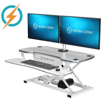 Streamline your home office with this on-trend mixed media computer desk that definitely makes a statement. Offering an efficient workstation that fits well in small spaces, this office desk with storage shelves is ideal for apartment living or dorm rooms. The contrasting silver perforated design frame pairs beautifully with the laminate shelving for a modern look. The generous desk surface boasts a smooth white finish with a raised top shelf for your monitor or keepsakes and a lower bottom shelf for your hard-drive and other supplies. The two shelf desk has a powder coated steel frame for long-lasting durability. Self-leveling floor glides keep your desk from wobbling on uneven floor surfaces and protect your floors by sliding smoothly when you need to move the desk. The compact open storage shelf desk has a modern design that works well for both studying and daily tasks. Pair this home office computer desk with one of our executive swivel office chairs to complet your set-up.
