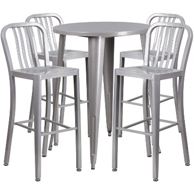 Product Name: Emma and Oliver Commercial 30" Round Silver Metal Indoor-Outdoor Bar Table Set-4 Cafe Stools