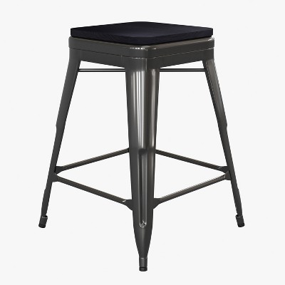 Sit down and chat among friends and family in the dining room or kitchen on these comfy colorful dining chairs. With a weather-resistant frame you can enjoy dining and socializing on your deck or sunroom. Appealing in both modern and industrial spaces, if you decide to move or redesign your space these accent chairs will adapt. Completely transform your dining space with this vintage bistro style chair. Designed for commercial environments the steel frame is coated in a durable powder coat finish to endure in high traffic areas. With a 500 pound static weight capacity you'll be able to accommodate all visitors for as long as you're open for business. Whether you need furniture for your home or restaurant business you'll be more than pleased with the heavy-duty galvanized steel construction that will last for years. This stackable indoor outdoor chair is ready for use as soon as it arrives with no assembly required. For longevity, care should be taken to protect from long periods of wet weather. Additional Features: Plastic Caps on cross brace protect finish when stacked, Galvanized Steel Black Powder Coated Frame Finish, Floor Glides to protect floors when used indoors, Metal Stack Chair for kitchen, dining room, patio, pool, office, or restaurant