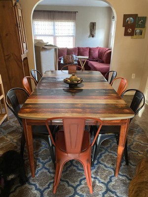 I recently purchased four of the metal chairs for my dining room table. I had the table and a bench custom made. The chairs go perfectly with the set. We are very pleased with the quality and look of them.