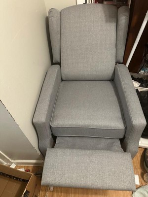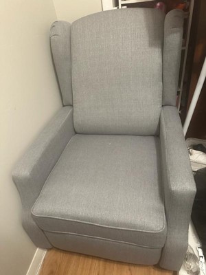 [This review was collected as part of a promotion.] Replaced a baby glider/rocker with this elegant recliner. Chose this as it’s not bulky, takes up a smaller footprint, and is a good compliment to our furniture. Firm, comfortable chair. Ten minutes to assemble. Happy with the look and feel.