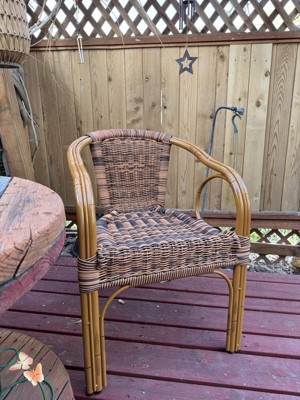 Emma and Oliver Dark Brown Rattan Patio Chair with Red Bamboo-Aluminum Frame