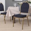 Product Name: Emma and Oliver Dome Back Stacking Banquet Chair, Navy Patterned Fabric/Gold Frame