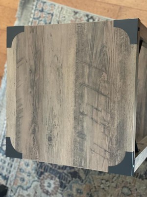 Plan a cozy gathering in your home with this trendy 2-tier farmhouse style side end table ideal for your living space. The warp resistant engineered wood frame with powder coated diagonal metal side bracing gives you long-lasting performance while the metal corner accents give a pop of sophistication that will always be welcome in any aesthetic. Place a unique dish for keys or an organizer for mail on the upper tier that holds up to 75 lbs. static weight while showcasing your personal style with handpicked decor on the lower tier of open storage that holds up to 50 lbs. static weight. Fixed floor glides prevent damage to your indoor flooring surfaces and a damp cloth is all that is required to maintain the appearance of your new table that assembles in 60 minutes or less. Pair with our matching coffee or console tables for a cohesive theme throughout your home