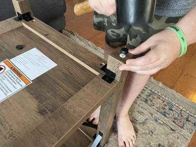 [This review was collected as part of a promotion.] This end table/ side table is easily put together and straight forward in build. I suggest using an electric screw driver for all the small screws. While they are pre drilled it’s the most time consuming part of the entire project. Note: while sturdy, this is not solid wood. I also elected not to put on the stickers to cover the screws. The color didn’t match well with the actual unit and it made them stick out more. It’s a bit lower than more other end tables, so I’ll likely use it with a low bed in my guest room as a side table.
