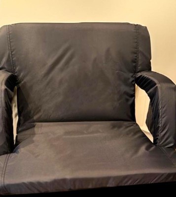 Emma and Oliver Extra Wide Foldable Reclining Heated Stadium Chair with Backpack Straps - Black