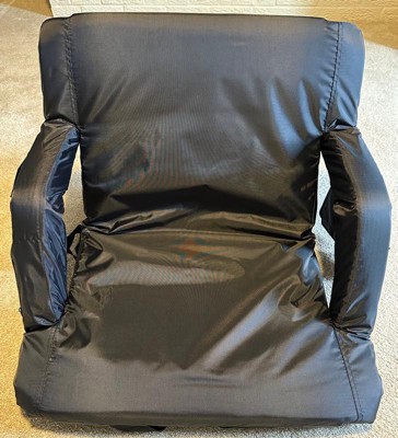 [This review was collected as part of a promotion.] I was excited for the product to come, but when it did, it was slightly damaged. The left side of the arm rest was ripped & it was also stated to be dual heating (back & seat padding heated) but unfortunately only the seat padding was heated. Other than that, it is a pretty useful product to have for watching games outdoor, camping & just being out in general.