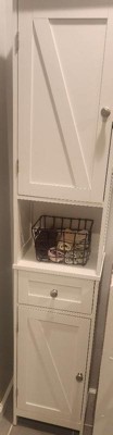 - Farmhouse Slim Dual Cabinet Linen Tower Organizer with Storage Drawer