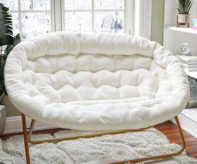 Emma and Oliver Folding Double Saucer Chair in Ivory Faux Shearling with a Soft Gold Steel Frame for Dorm, Living Room, or Bedroom
