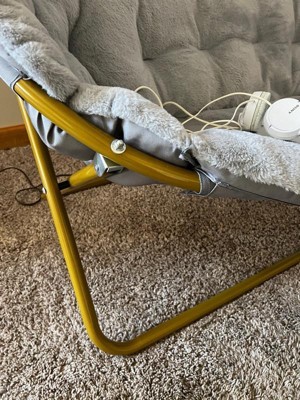 [This review was collected as part of a promotion.] I just got my chair today and in love!! The cushion is very comfy. Easy to set up, just unfold! The design goes great in my room with the gold accent. You need this as a lounge chair!
