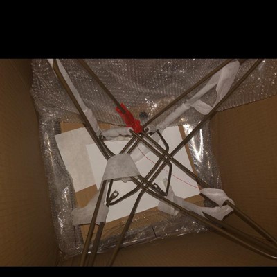 Using this for a craft/music area in my bedroom where it works well visually. Surprised at how comfortable the chair is, I thought it would be rigid but it has some give to it. The base is not a bright gold but I like it better the way it is. Great value for the price.