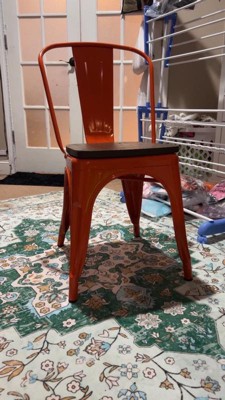[This review was collected as part of a promotion.] Bright orange metal chair with a wooden seat that comes in and off. Definitely seems durable, probably not going to break any time soon. Not much installation required, came in a cute color. , I like it.